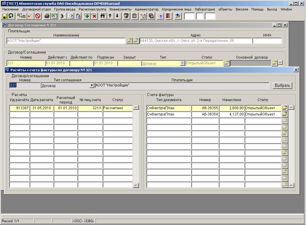 Глава 11. Счета-фактурыПосле выполнения расчета по всем требуемым договорам (индивидуально или массово) запускается процедура формирования счетов-фактур. Расчеты и счета-фактуры по договору можно посмотреть в форме Счета-фактуры. При необходимости расчеты и счета-фактуры можно удалить (в открытом расчетном периоде) и сформировать заново. Счета-фактуры можно просматривать и печатать Отчет Счет-фактура.