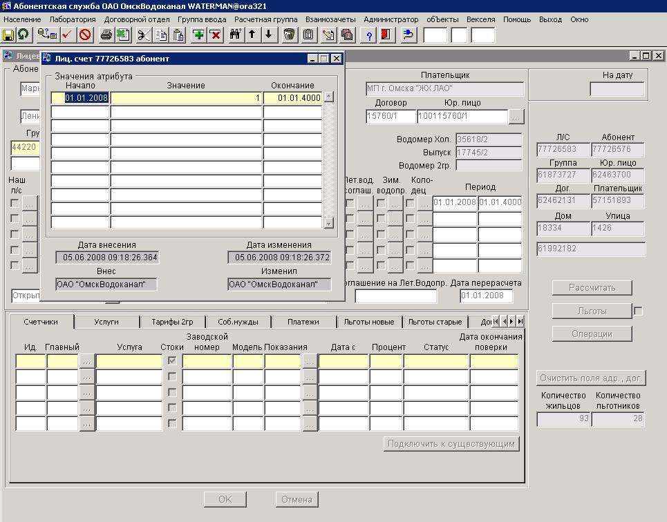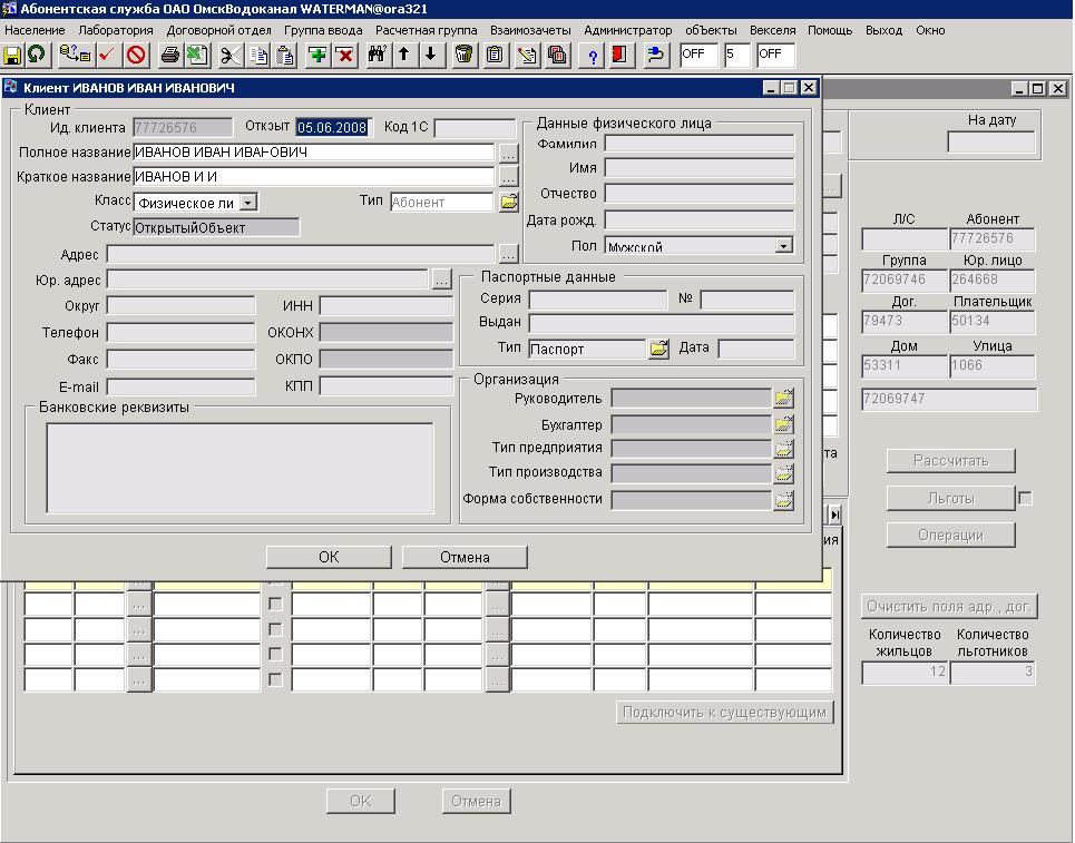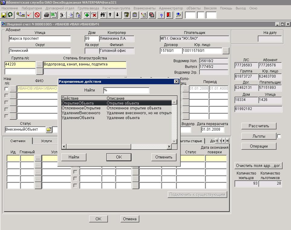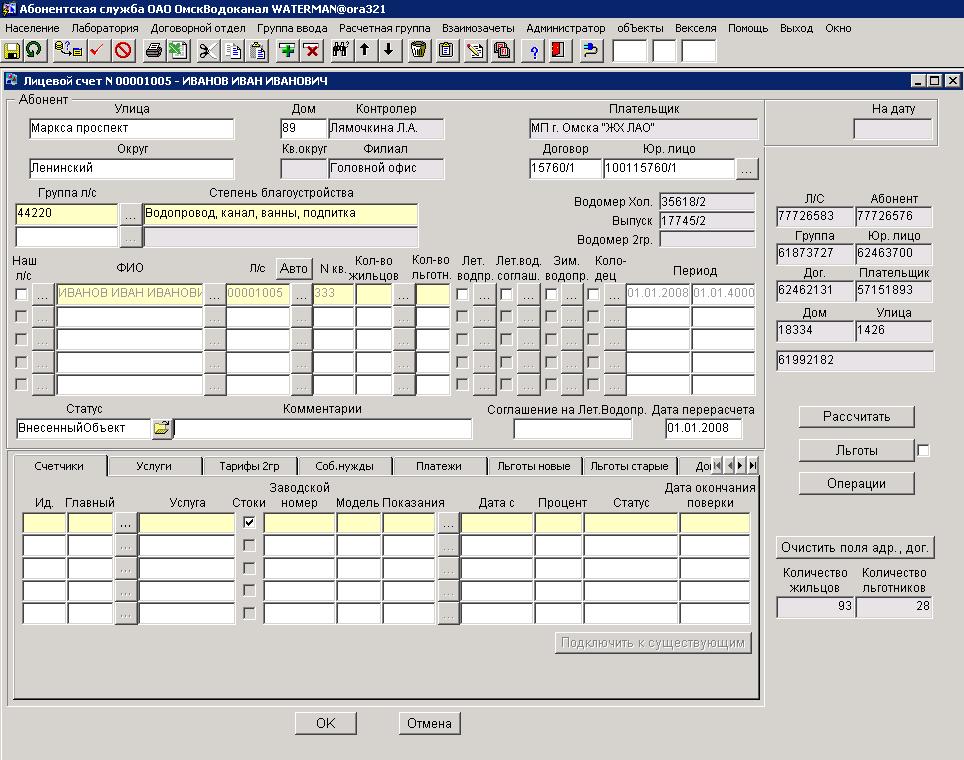 Глава 6. Контрольный пример. Лицевой счет со льготой.Создание лицевого счета: