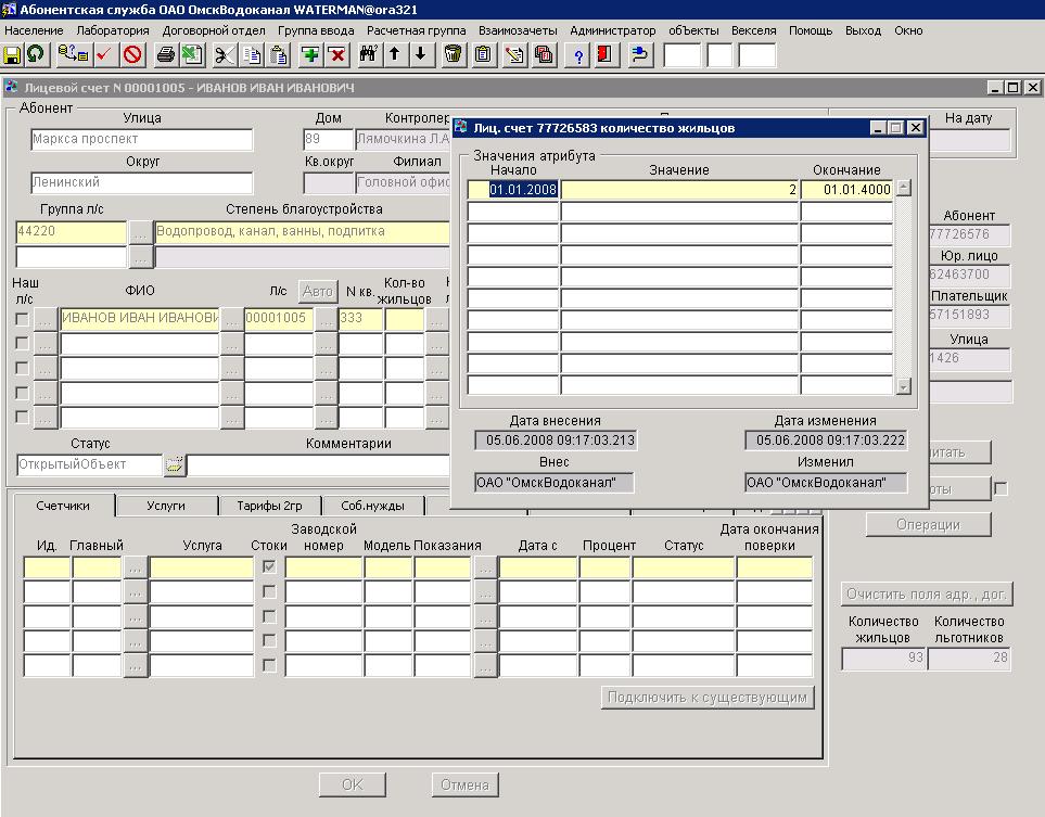 В дальнейшем вы можете изменить любой параметр по лицевому счету либо в карточке