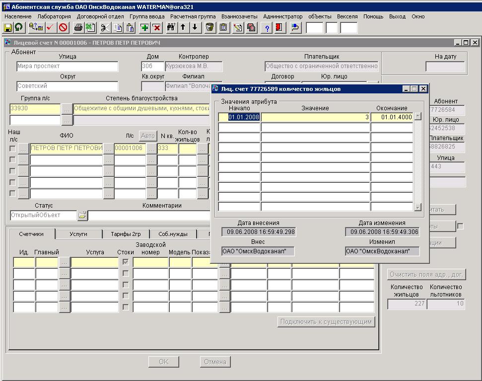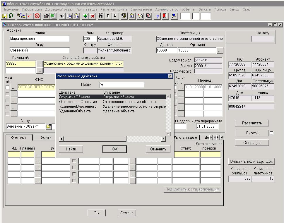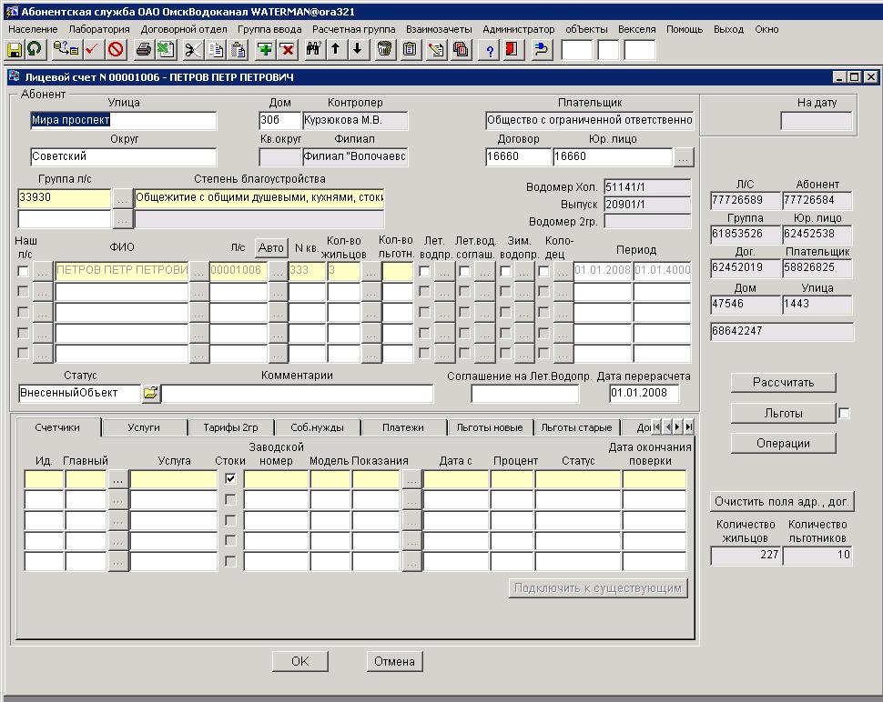 Глава 8. Контрольный пример. Лицевой счет со счетчиком.Создание лицевого счета: