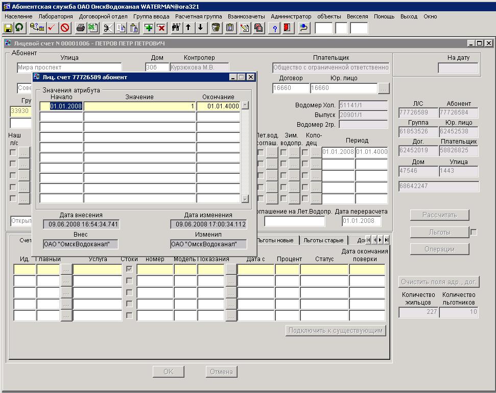 В дальнейшем вы можете изменить любой параметр по лицевому счету либо в карточке