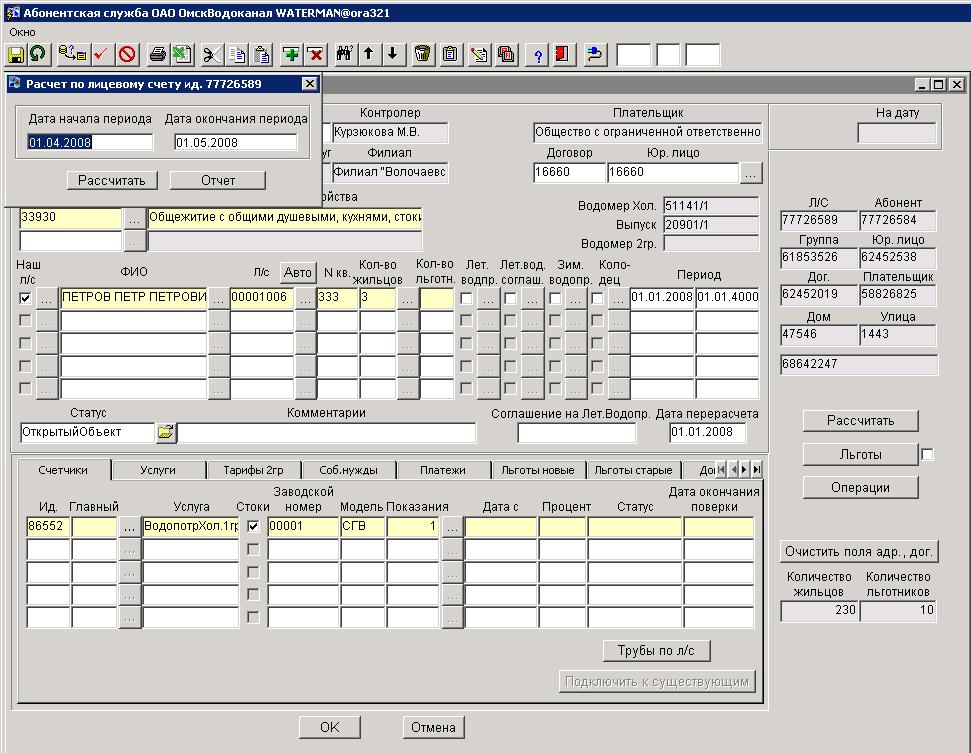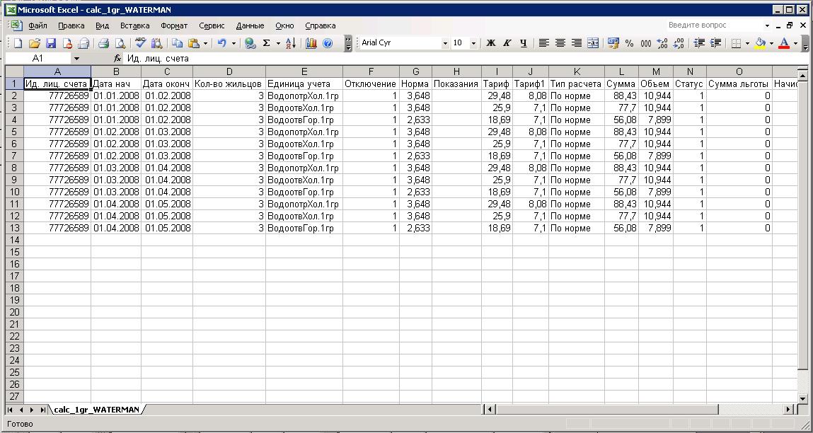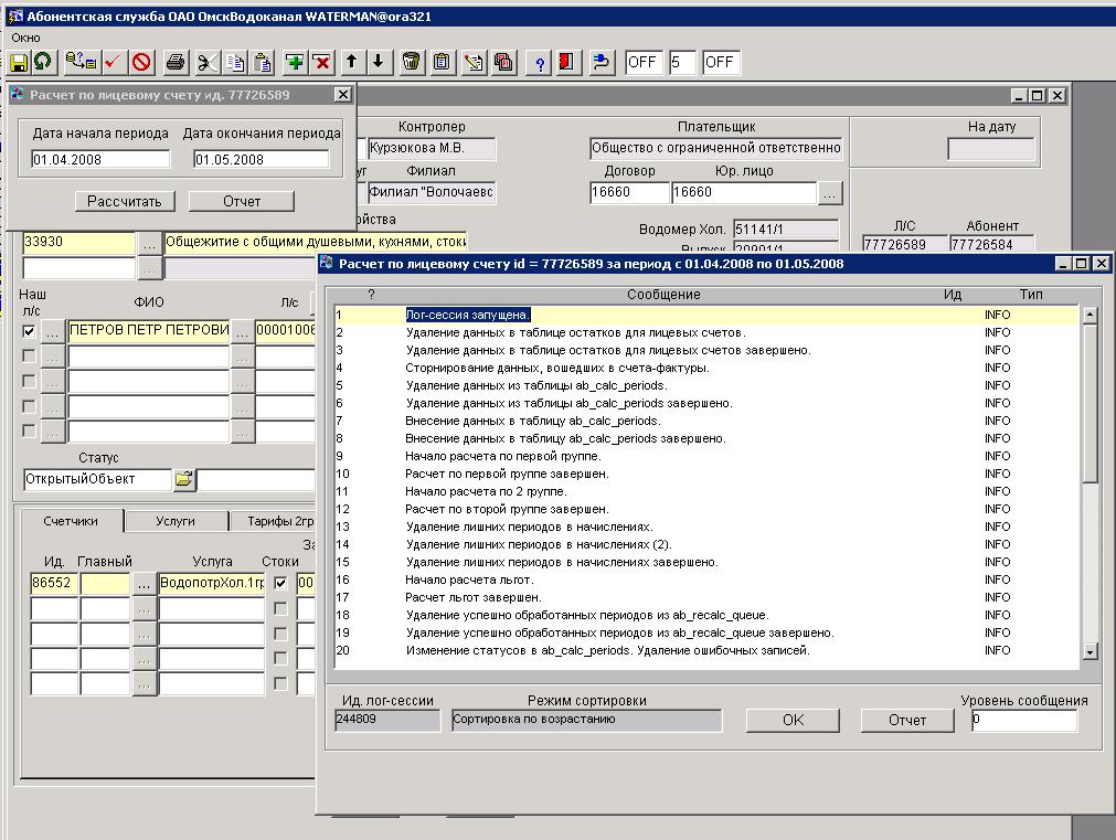 Запускаем расчет лицевого счета.Результат расчета можно будет увидеть
