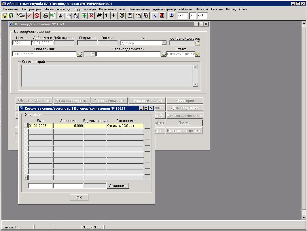 сверхводопотребление и сверхводоотведение, для этого нажмите соответствующие